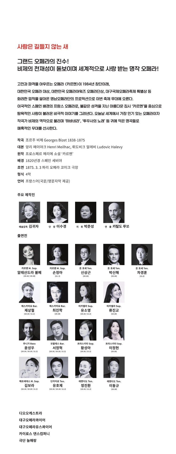 - 주최 대구광역시, (재)대구문화예술진흥원 대구오페라하우스