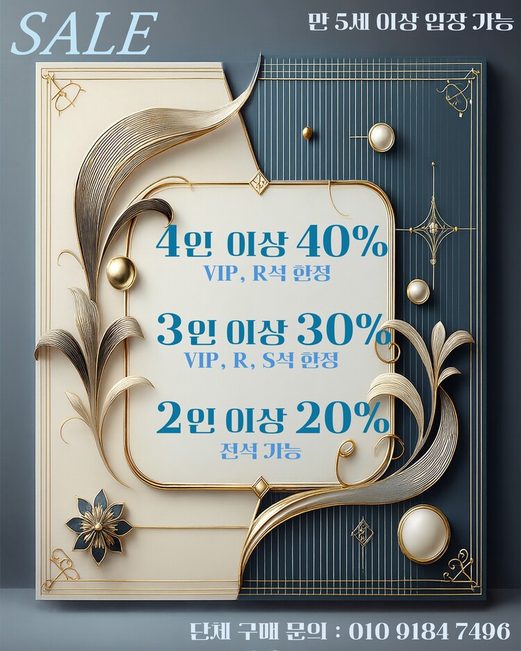 • 티켓가격 VIP석 100,000원 R석 80,000원 S석 60,000원 A석 40,000원