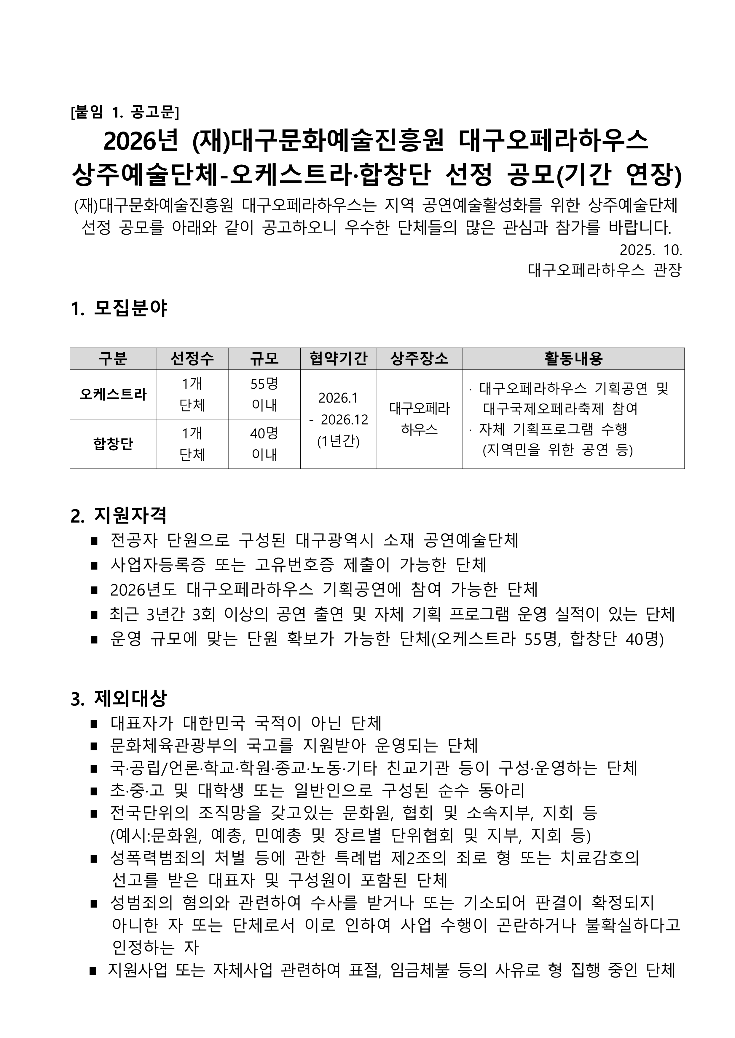 2026년 대구오페라하우스 상주예술단체-오케스트라, 합창단 선정 공모(기간 연장)