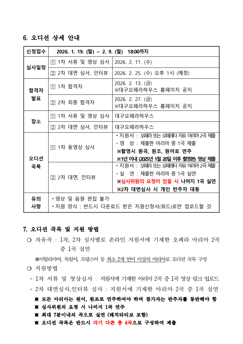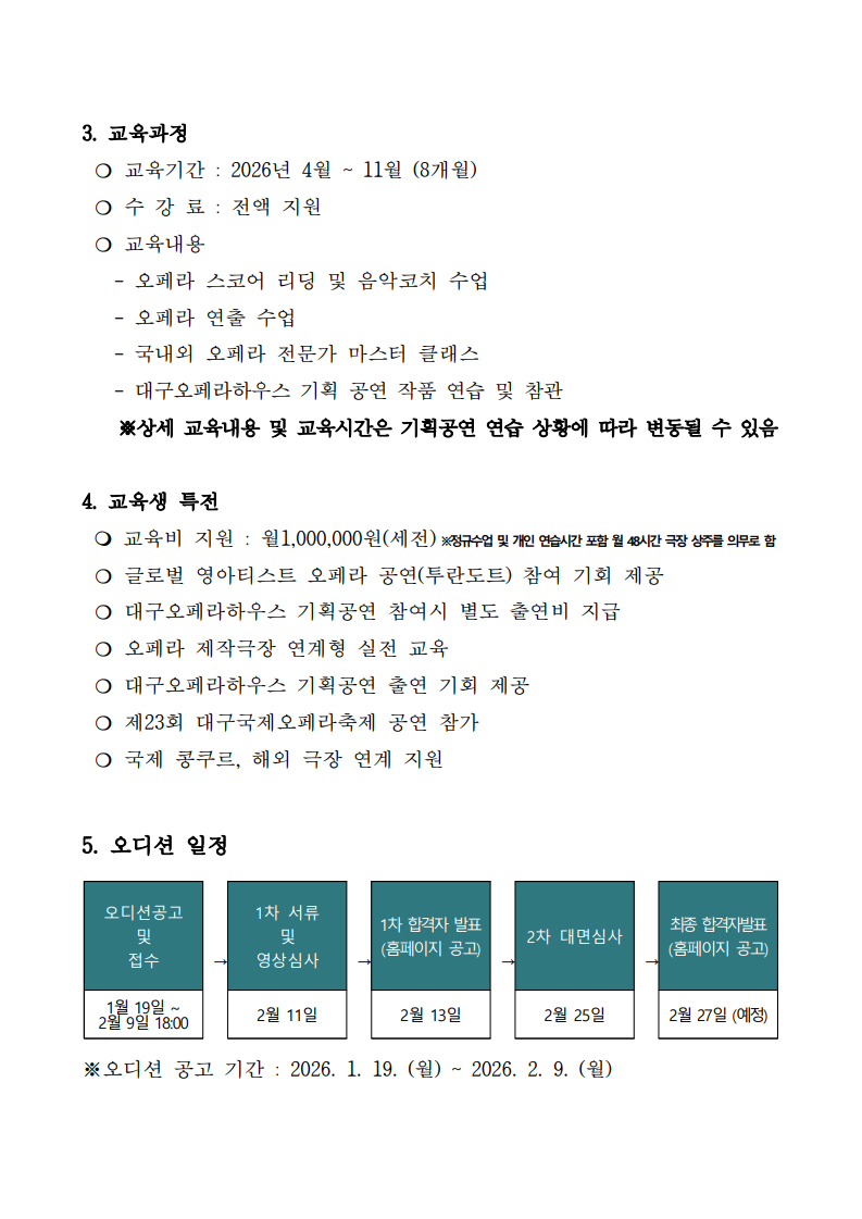 2026 대구오페라하우스 오펀스튜디오 성악가 선발 오디션 공고