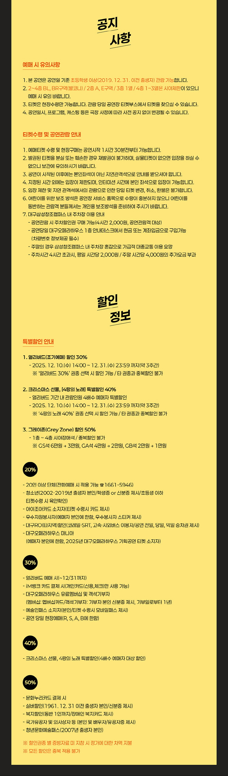 - 공연문의 전화예매 1661-5946 / 기타문의 053-430-7472
